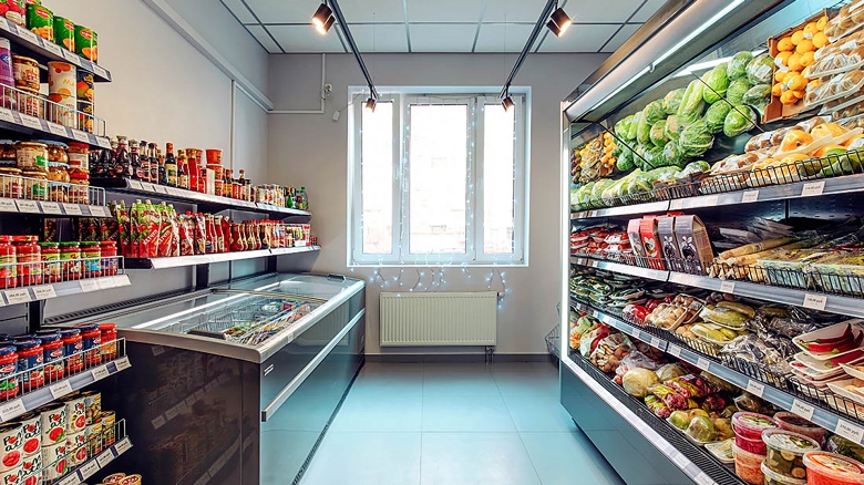 Не вся площадь магазина работает на продажи. В среднем 70–80% должно приходиться на торговый зал, остальное — на склад, подсобку и кассовую зону.