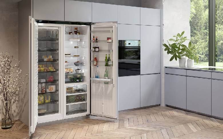 Перед покупкой измерьте свободное пространство, чтобы выбрать встроенный холодильник, который точно поместится. Обратите внимание на внутренний объем: для одиночных людей подойдет модель с объемом 100-150 литров, для семьи из 3-4 человек – 200-300 литров. Учитывайте, что вместительность должна соответствовать ежедневному потреблению продуктов.
