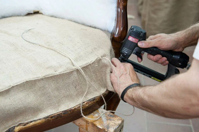 - Полная реставрация, когда снимается обивка, убирается наполнитель и производится ремонт каркаса, замена подъемного механизма. После этого устанавливается совершенно новый наполнитель и осуществляется перетяжка обивкой.