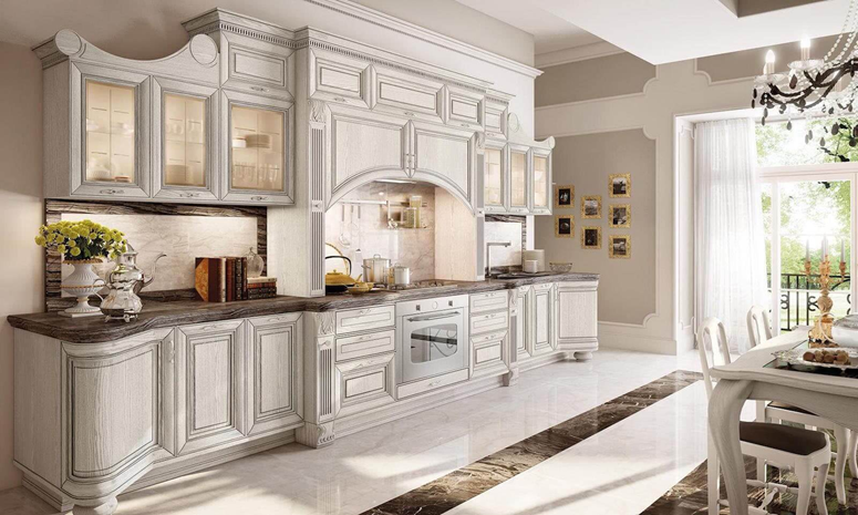 Популярны и белоснежные кухни с позолотой или резными элементами.