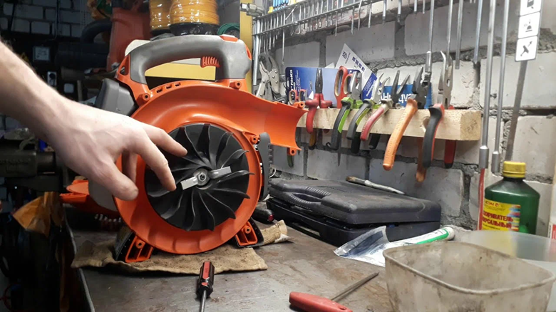 - Безопасность. Перед началом ремонта обязательно отключите воздуходувку от электросети или снимите свечу зажигания (для бензиновых моделей).