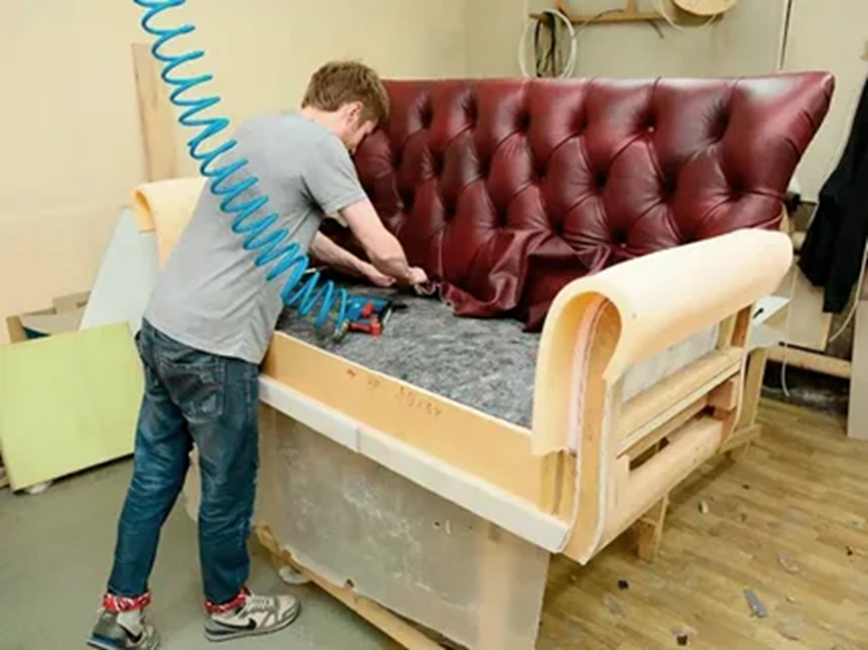 Подготовка мебели к перетяжке включает в себя демонтаж старой обивки и проверку состояния наполнителя. В большинстве случаев требуется замена поролона или пружин, поскольку со временем они теряют упругость и форму. При необходимости укрепляется и каркас, особенно если мебель долго использовалась и подвергалась нагрузкам. На этом этапе можно изменить конструкцию мебели, добавить дополнительные элементы, сделать сиденье более мягким или наоборот – более упругим.