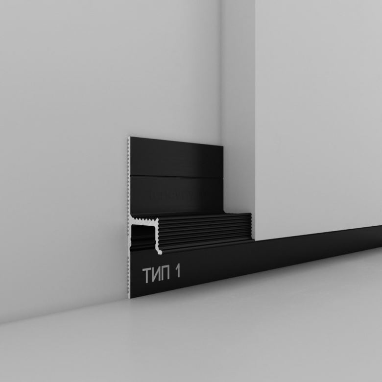 Теневой профиль тип 1 может быть изготовлен из различных материалов, включая алюминий, сталь, ПВХ и композитные материалы, что обеспечивает широкие возможности для дизайнерских решений и долговечность изделия.