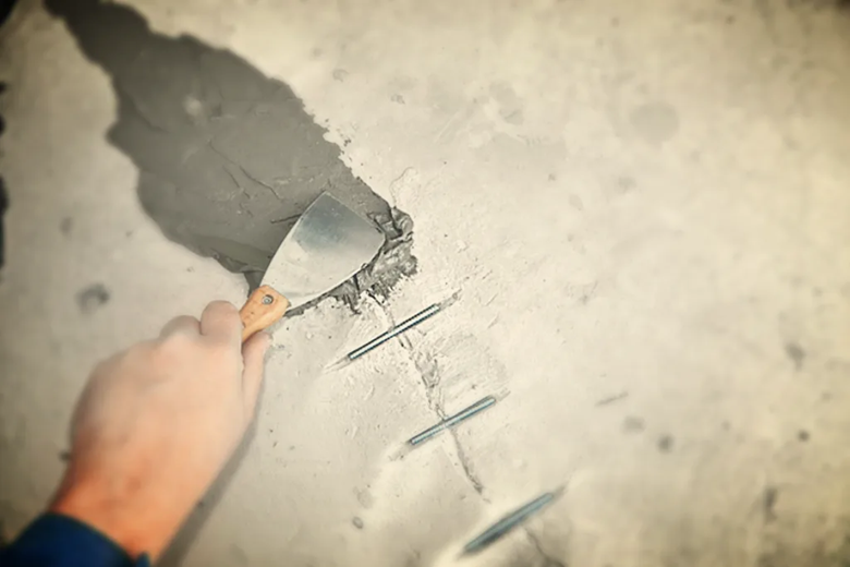 Часто для кращого зчеплення з ремонтною сумішшю тріщину трохи розширюють, надаючи їй V-подібну форму. Це дозволяє матеріалу глибше проникнути у структуру стіни та надійно закріпитися. Потім ділянку обробляють ґрунтовкою — вона зміцнює поверхню та покращує адгезію.