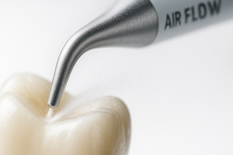 | 3. Удаление пигментированного налета | Аппарат Air Flow | Поток воздуха, воды и мелкодисперсного порошка эффективно очищает эмаль от потемнений. |
