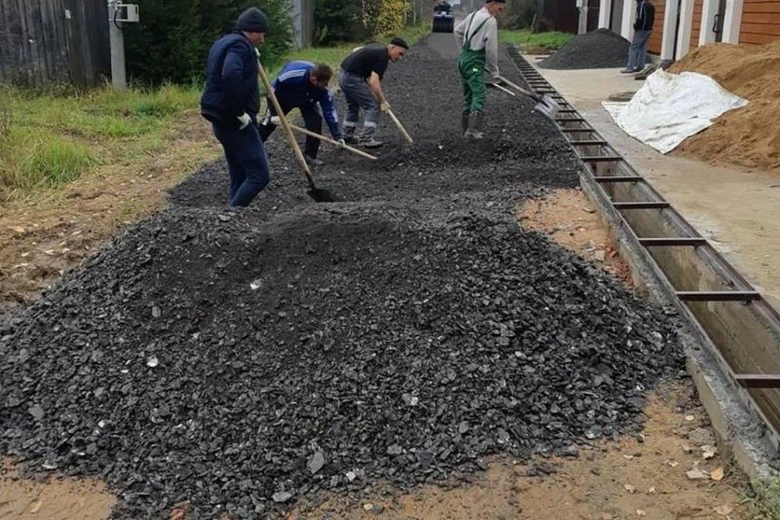 Первый этап укладки асфальтовой крошки — подготовка основания. Оно должно быть ровным, прочным и хорошо уплотнённым. Наличие устойчивого основания предотвращает деформации и растрескивание покрытия в дальнейшем. Важно удалить пыль, мусор и другие загрязнения, которые могут повлиять на сцепление материала с поверхностью. При необходимости выполняется дополнительная выравнивающая подсыпка.
