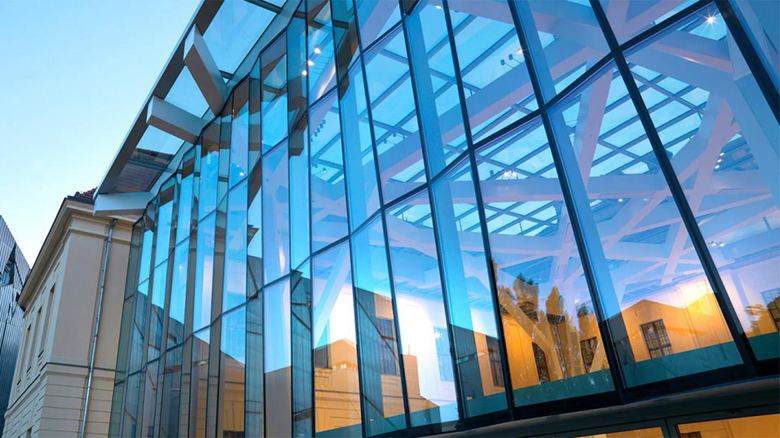 - облицовка стеклом наделяет здания стильным и эффектным обликом;