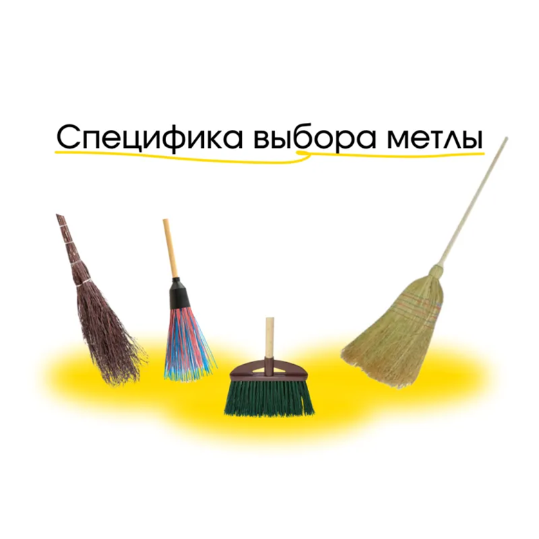 - Метлы — оснащены длинной ручкой из дерева или пластика, предназначены для работы на улице или в просторных цехах.