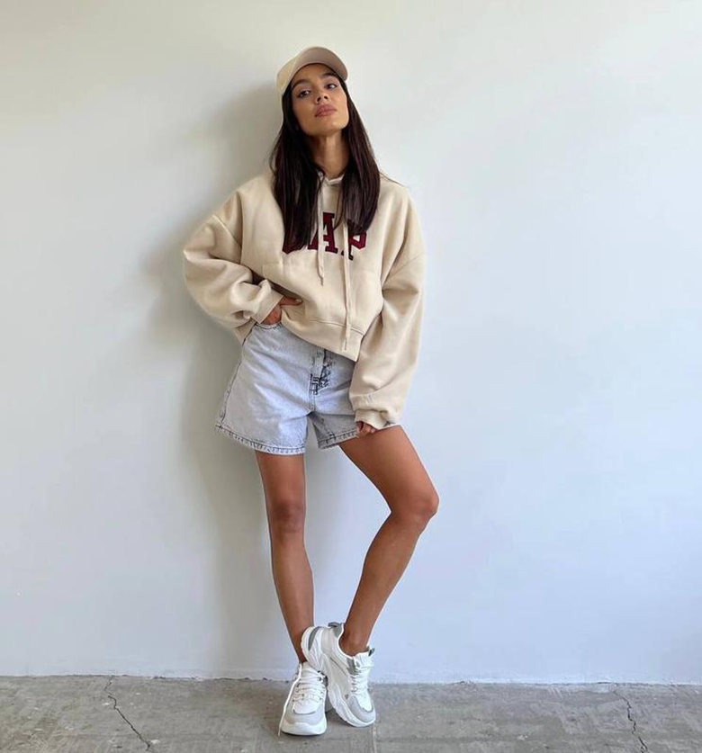 - Кроп-худі. Короткі худі, що закінчуються на рівні талії або трохи вище. Вони ідеально підходять для створення грайливих та сучасних образів. Чудово поєднуються з високими спідницями, шортами або джинсами.